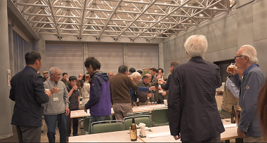 食事をしながら感謝の集い。そこで語り合いきれず、その後の各部屋での二次会で、車座談義に花が咲きました。